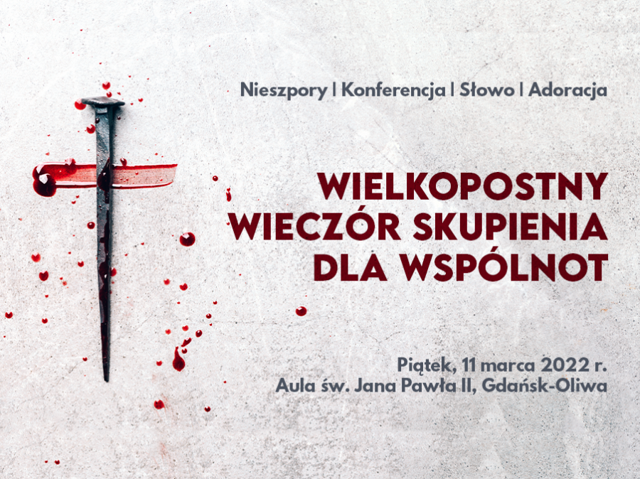 W piątek, 11 marca odbędzie się w Gdańsku-Oliwie (aula św. JPII, ul. Nowickiego 2) wielkopostny wieczór skupienia dla członków wspólnot katolickich z naszej archidiecezji.