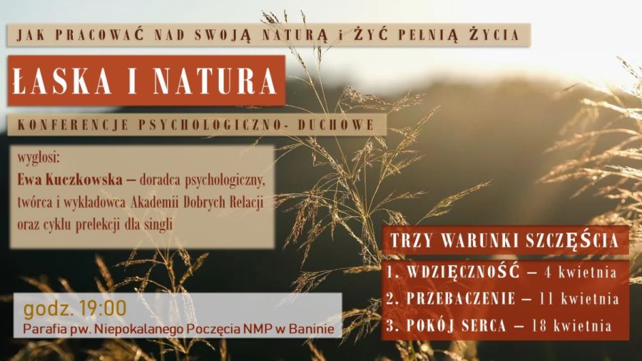 Zamysł tych konferencji powstał z inspiracji myślą Św. Tomasza z Akwinu Łaska buduje na naturze. Jako osoby wierzące jesteśmy wezwani do pracy nad swoją naturą po to, aby Łaska mogła wydawać w nas jak najobfitsze owoce. Jak pracować nad swoją naturą i żyć pełnią życia? Pan Jezus powiedział: poznacie prawdę, a prawda was wyzwoli (J 8,32). Obietnica ta dotyczy poznania prawdy o Bogu, o świecie i o wierze, ale również – a może przede wszystkim - o nas samych. Prawda o sobie samym wyzwala człowieka z fałszywych wyobrażeń i zbliża do rzeczywistości. Stanowi punkt wyjścia dla rozwoju i realizacji celu życia.