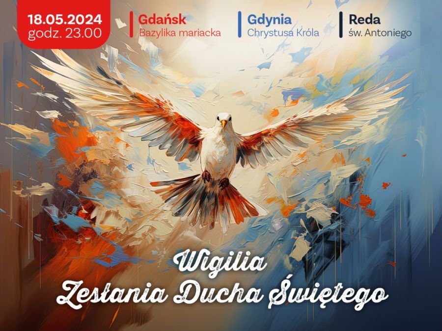 Serdecznie zapraszamy w Wigilię Zesłania Ducha Świętego na modlitewne czuwanie. Odbędzie się ono w sobotę 18 maja 2024 w kościele św. Katarzyny w Gdańsku (oo. karmelici), ul. Podmłyńska 10.
